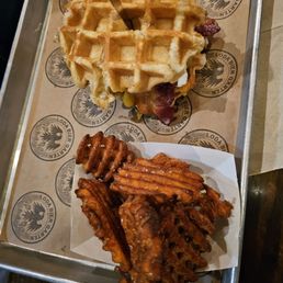 My personal experience at Loda Bier Garten was fantastic. The chicken and waffle sandwich, french fries, and southwest chicken egg rolls were all exceptional. The ambiance inside the restaurant was funky and cool, adding to the overall dining experience. I highly recommend trying out their unique menu and enjoying the lively vibe that Loda Bier Garten has to offer.