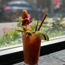 I wanted a Bloody Mary and was told I could only get the $20 BM. That comes with a small dinner itself but I went with it. I did love it! It was delicious and I just let my Mini Schnauzer have the mini corn dog. It would be nice if someone that didn't want all that could just order a plain BM. Other than that it's really cool on the inside with a ton of choices on beer.